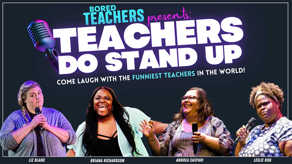 As the leader in teacher comedy with millions of followers and billions of video views on social media, Bored Teachers is launching an additional tour with their powerhouse roster of comedians. The Teachers Do Stand Up Tour is a rotating lineup with EVEN MORE of the most hilarious teacher comics from around the country, spreading smiles to every educator in need of a night of laughter after another challenging school year. Don't miss out on this stacked comedy show of jokes every educator can relate to. We'll see you there teacher friends!